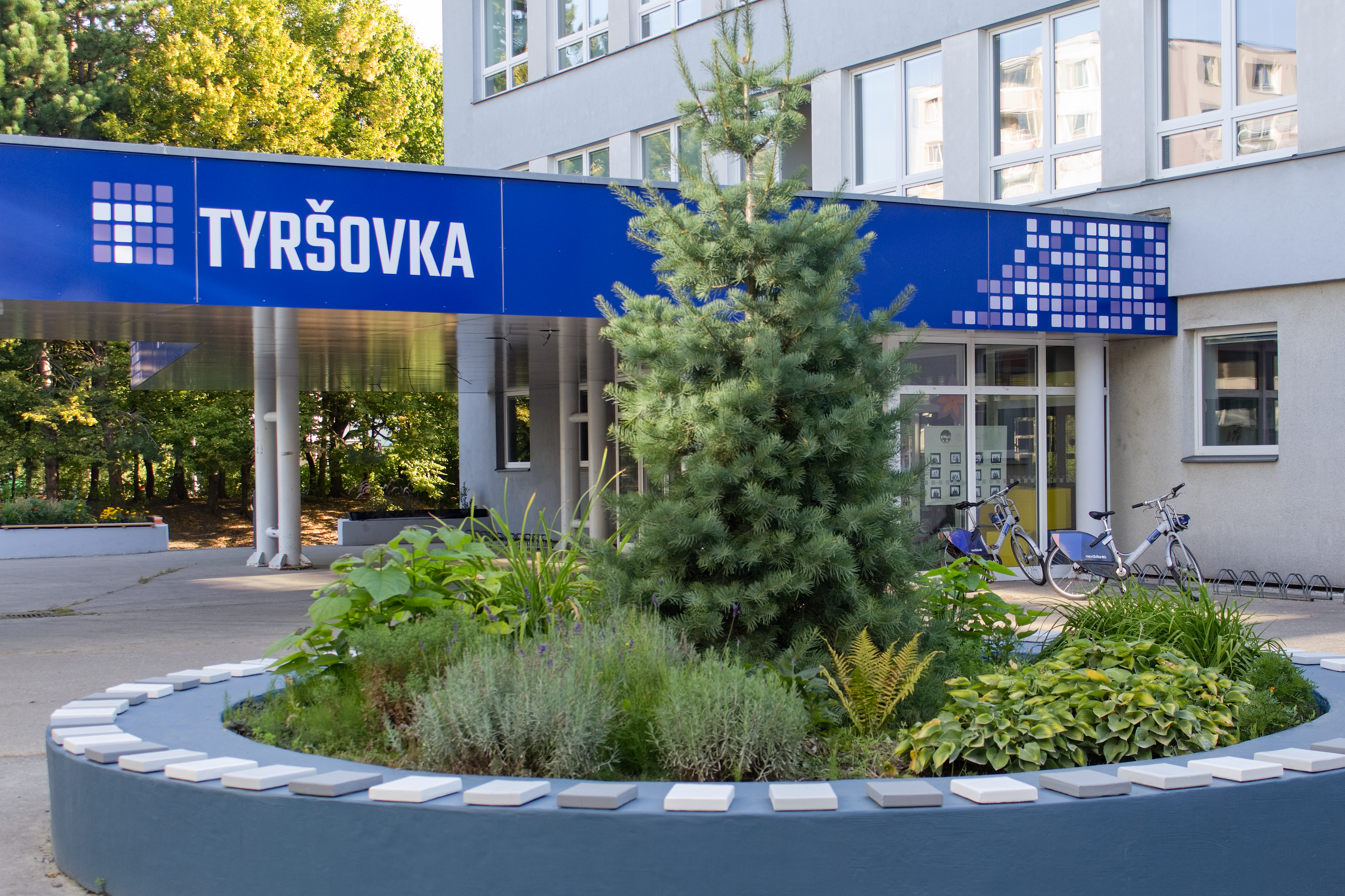 Do školní budovy na ulici Tyršova, která se nachází na východním okraji Kuřimi v blízkosti Kuřimské hory, docházejí žáci 3. až 9. ročníku. Kromě kmenových tříd využívají odborné učebny, a to dvě učebny informatiky, tři učebny cizích jazyků, učebnu fyziky a chemie, přírodopisu, zeměpisu, environmentální výchovy, hudební a výtvarné výchovy, řemeslnou dílnu, cvičný byt a keramickou dílnu. Na odborné učebny navazují kabinety a sbírky učebních pomůcek. Součástí školy je velká a malá tělocvična, školní knihovna, několik oddělení školní družiny a školní jídelna. Ve vnitrobloku se nachází nově zrekonstruované atrium sloužící jako komunitní zahrada i jako místo k odpočinku. K pohybovým aktivitám žáci využívají sportovní areál s hřištěm. V budově na ulici Tyršova se nachází také celé ředitelství školy a zázemí pro školní poradenské pracoviště.