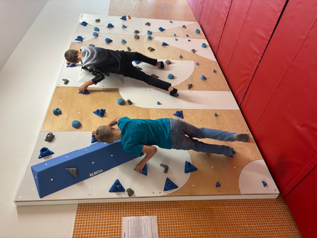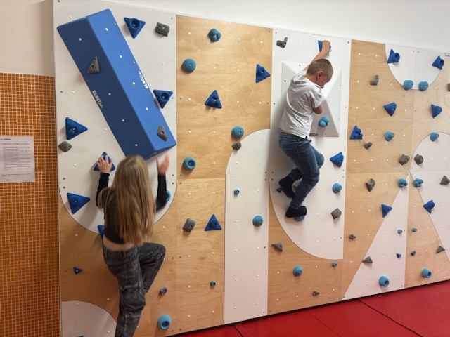 Od září máme na Tyršovce nově zprovozněnou lezeckou stěnu. Je navržena tak, aby vyhovovala dětem. Stěna nabízí různé obtížnosti tras, díky čemuž žáci mohou postupně rozvíjet své schopnosti a budovat fyzickou kondici. Nová stěna tak poskytuje bezpečné a inspirativní prostředí, podporuje týmovou spolupráci a řešení problémů.