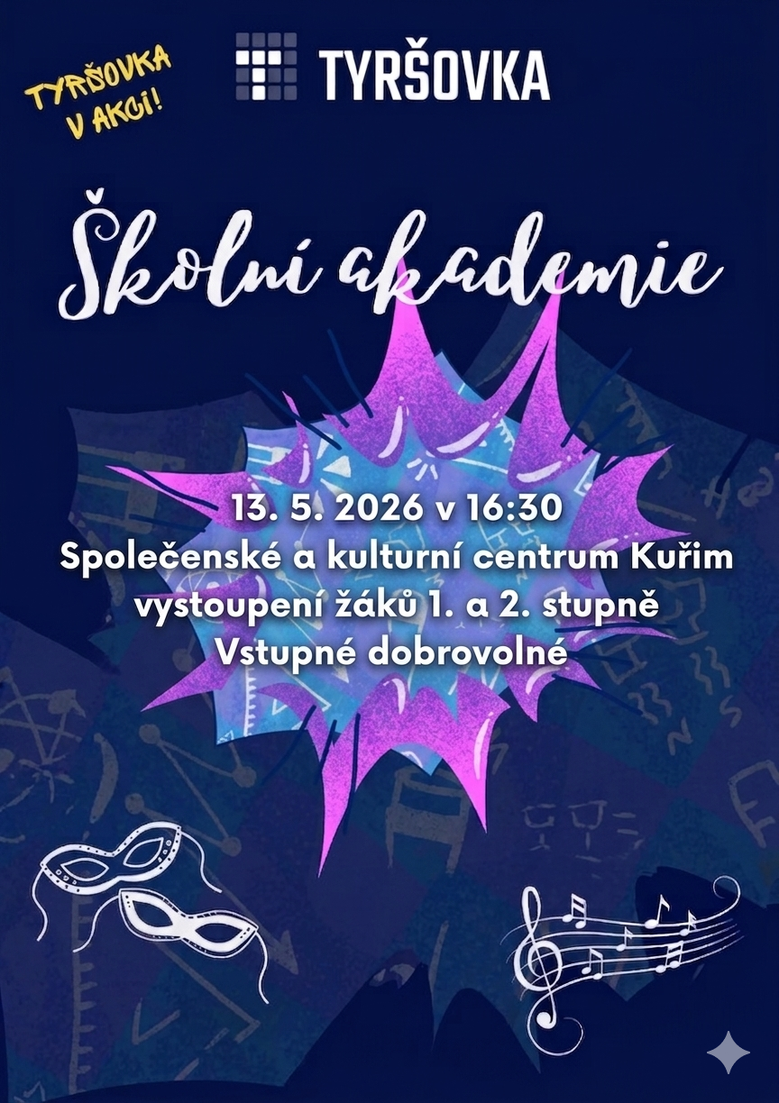 Máme moc šikovné žáky. Předvedou vám to. Ve středu 13. 5. 2026 se naše hvězdy rozzáří na Školní akademii Tyršovky!